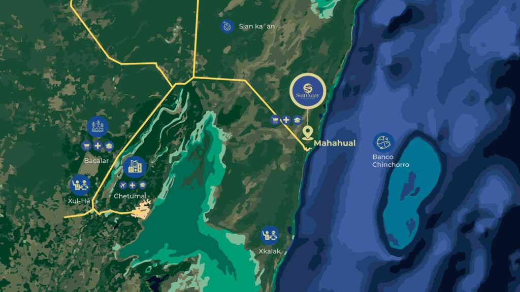 Imágenes referenciales: Las imágenes en esta publicidad son solo con fines ilustrativos de Mahahual, Quintana Roo, y el aspecto de la zona puede variar según la temporada del año.